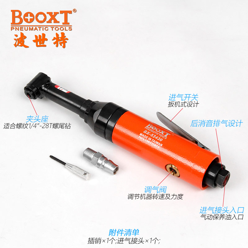東莞市強(qiáng)勁五金工具有限公司提供臺灣BOOXT波世特品牌氣動工具,螺紋柄氣動鉆BX-53430廠家直銷,首件享特價。咨詢熱線:4008301980