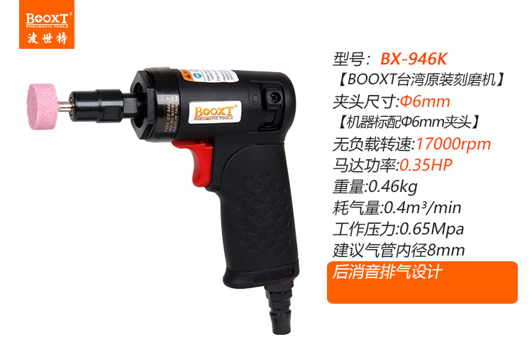東莞市強勁五金工具有限公司提供臺灣BOOXT波世特品牌氣動工具,槍式氣動刻磨機BX-946K廠家直銷,首件享特價。咨詢熱線:4008301980